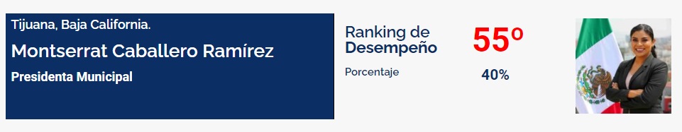 La edil de Tijuana se localiza en el puesto 55 de 60, siendo la que tiene el peor registro en todo Baja California, con un desempeño del 40%.