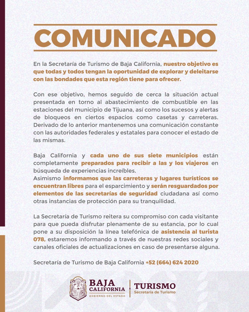 23 de Mayo en Tijuana.- La Secretaría de Turismo del Estado, emitió un comunicado para informar que el territorio se encuentra seguro y preparado para recibir a turistas.