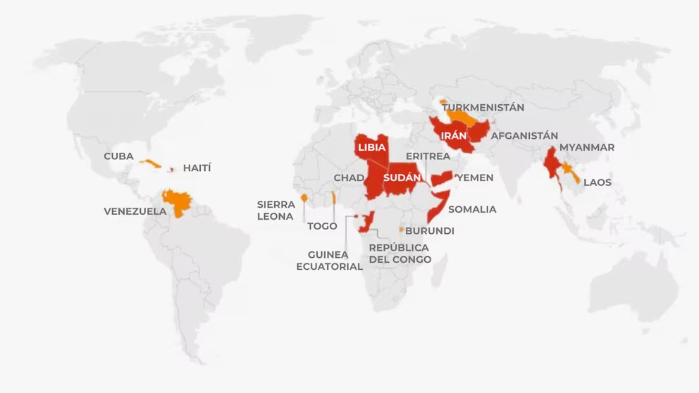 Aunque la lista incluye países de África, Asia y Medio Oriente como Somalia, Irán, Yemen, Nigeria y Siria, también figuran tres naciones de América Latina, cuyo nombre no fue divulgado al cierre de esta edición. Activistas temen que Venezuela, Cuba y Nicaragua estén entre ellos, aunque el Departamento de Estado no lo ha confirmado oficialmente.
