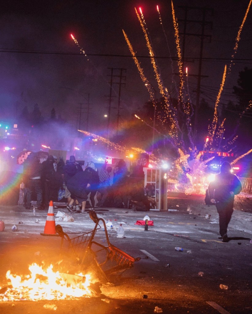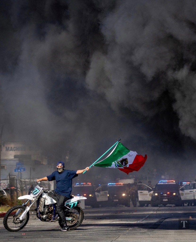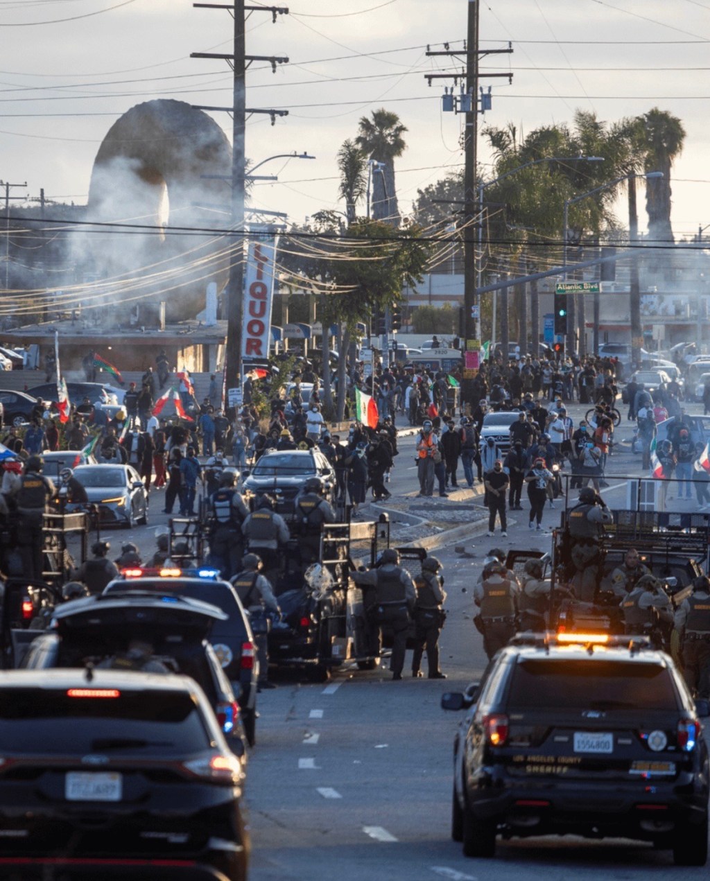 Estas imágenes capturadas durante el enfrentamiento en Los Ángeles reflejan el creciente descontento por las políticas migratorias y el miedo constante de miles de familias latinas ante posibles deportaciones.